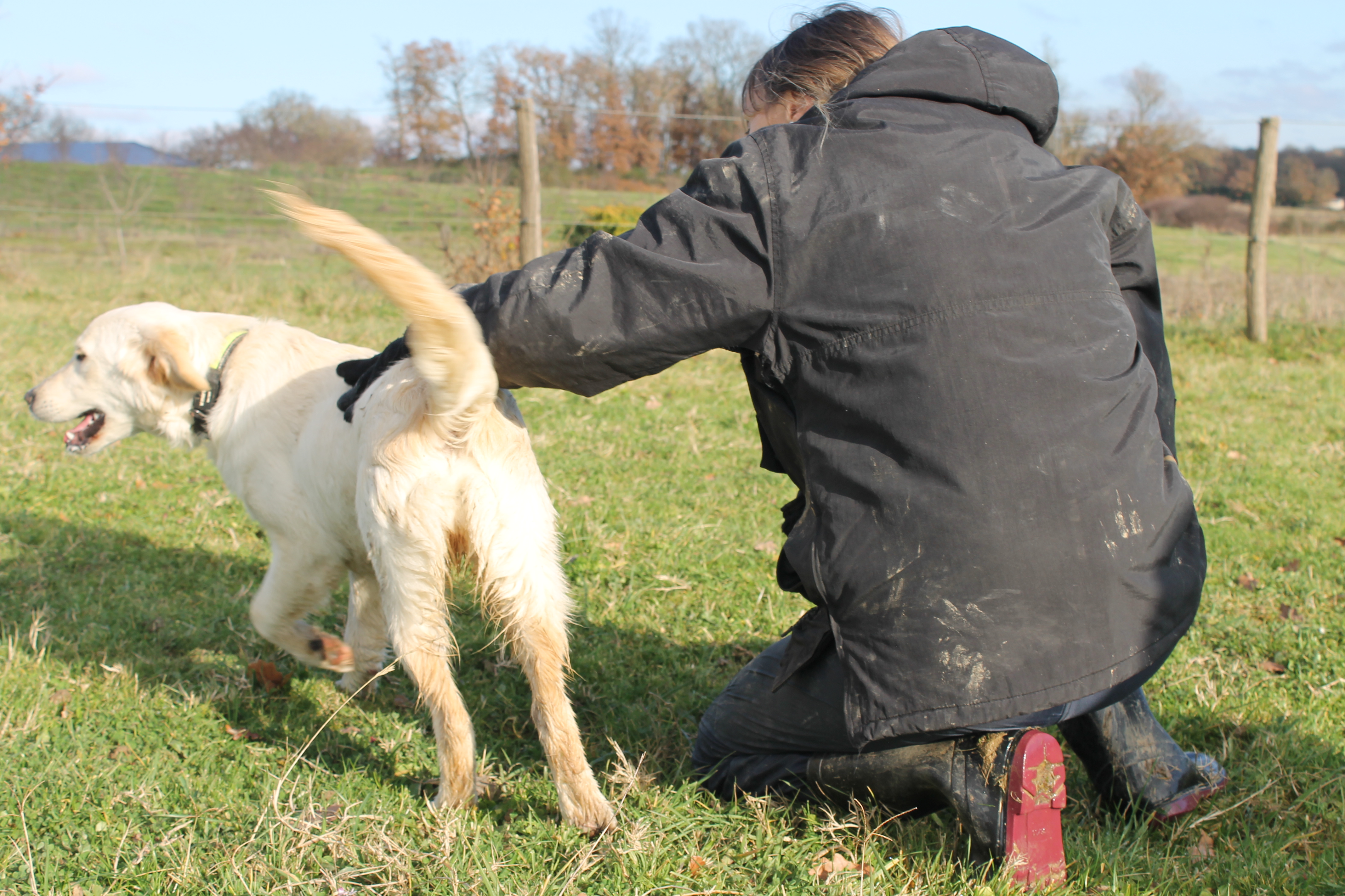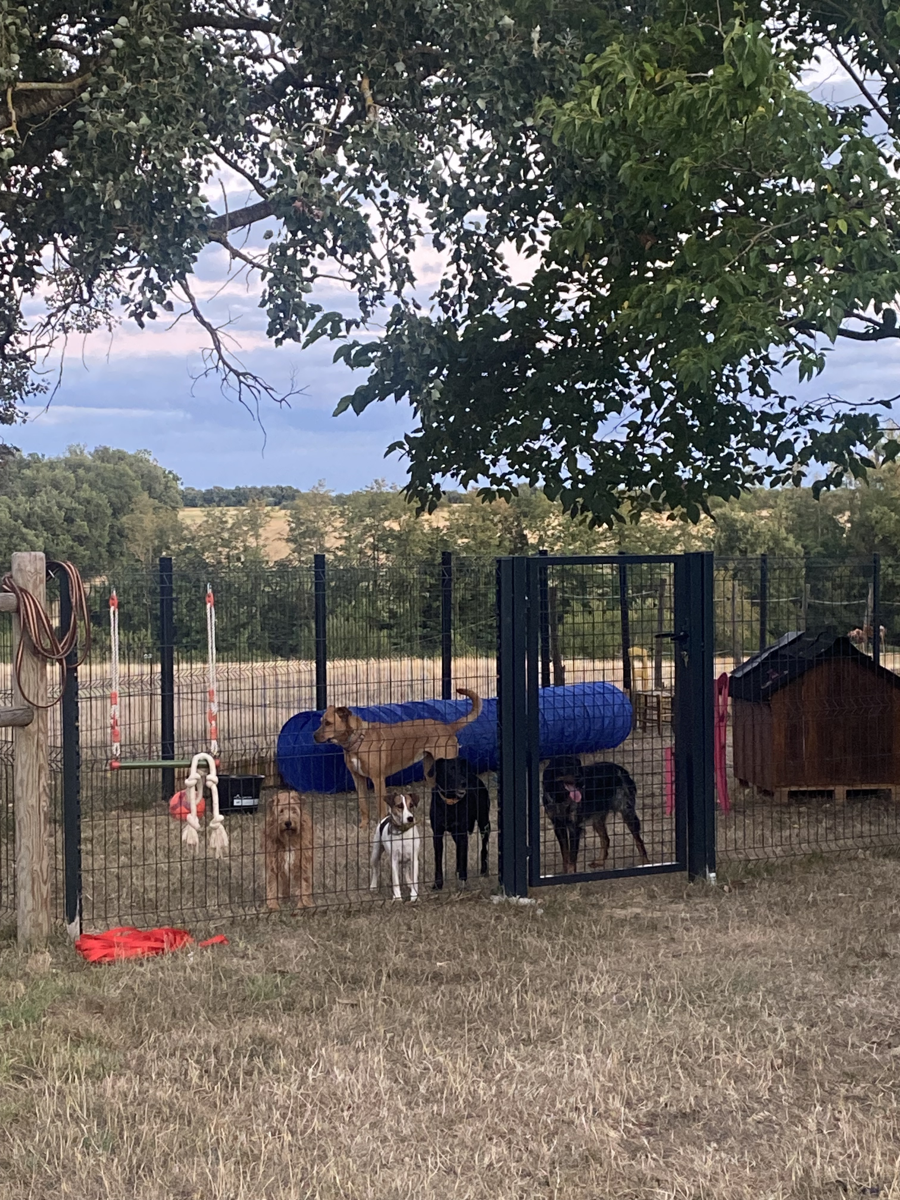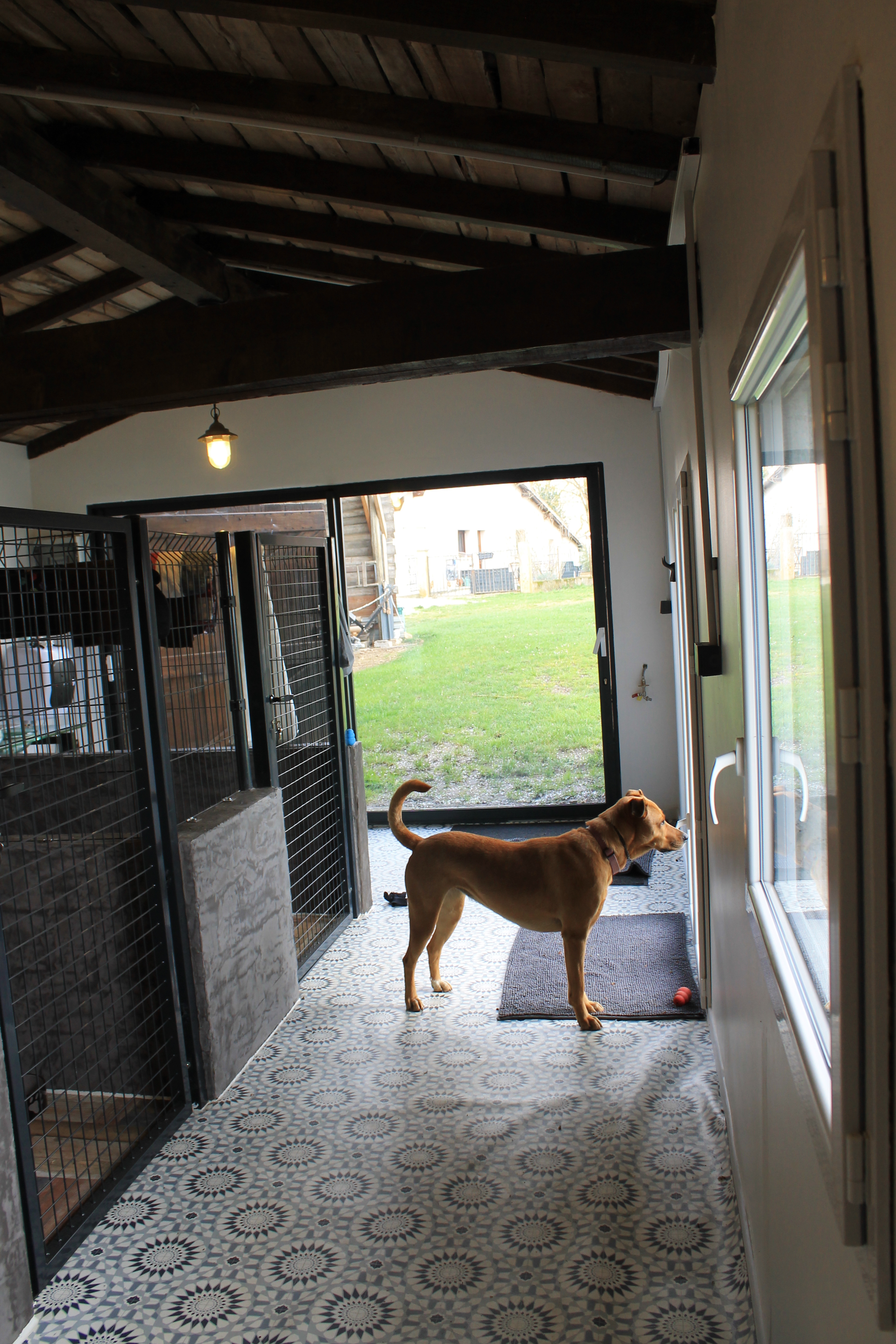En journée, les chiens ont accès libre à un jardin sécurisé, pour profiter de l’extérieur, se dépenser et interagir s’ils le souhaitent, toujours sous surveillance.