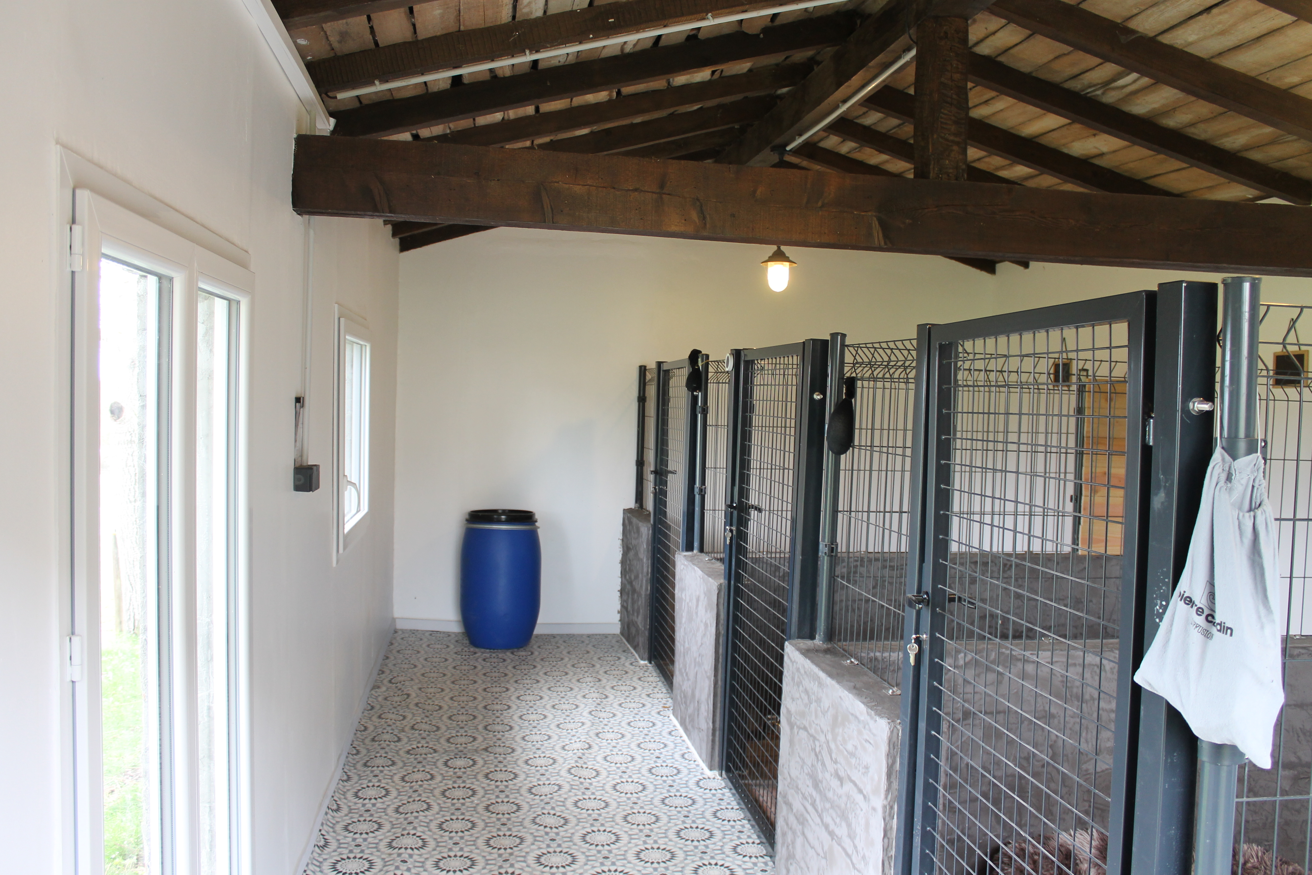 Les chiens sont hébergés dans une petite maisonnette aménagée pour leur confort, avec 3 boxes spacieux, idéals pour leur permettre de se reposer au calme.