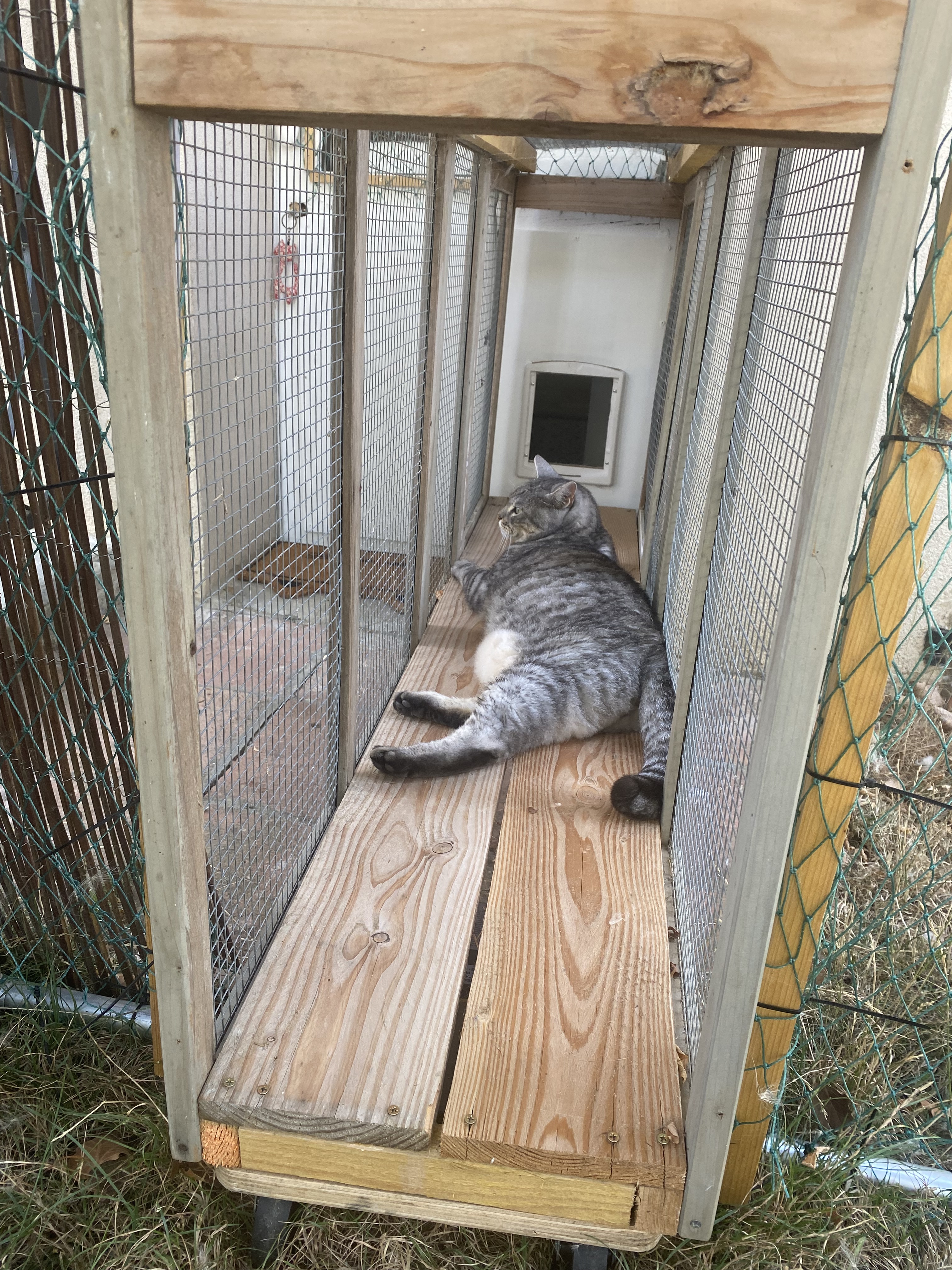 Les chats bénéficient également d’un accès à l’extérieur, protégé par des filets sécurisés, pour profiter de l’extérieur.